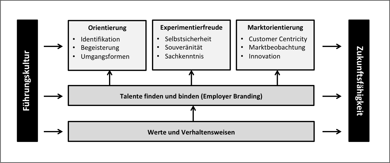 Führungskräfte sind die Multiplikatoren der vorhandenen Führungskultur. Durch ihr Verhalten werden die Prinzipien, Werte und Umgangsformen des Unternehmens in den Arbeitsalltag überführt.